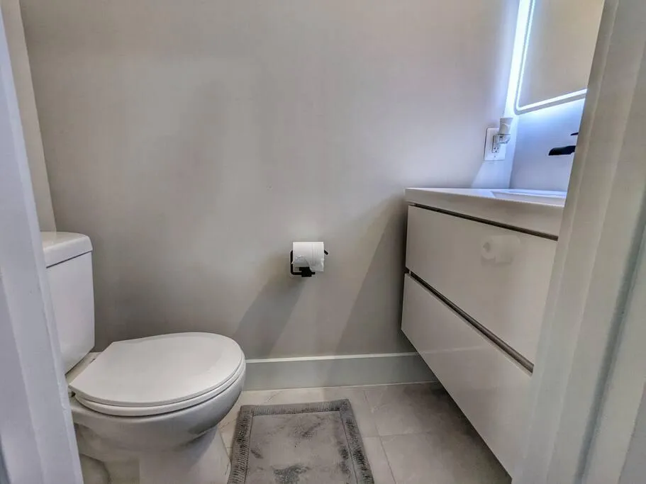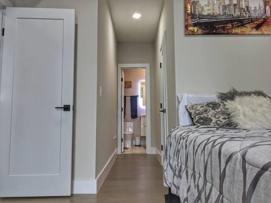 ✓ This apartment features 1 large bedroom and 1 full bathroom and 1 half-bathroom across 1 single level.